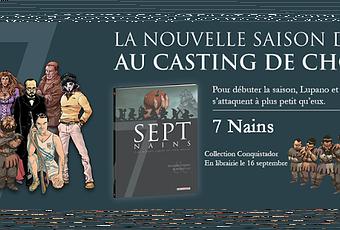 La troisième saison de la série "SEPT" démarre le 16 septembre aux éditions Delcourt. Et pour ce premier volet de la saison, le casting démarre par une BD de Wilfrid Lupano et Roberto Ali, aidé au storyboard par Jérôme Lereculey, qui s'attaquent à la fameuse histoire des 7 Nains.