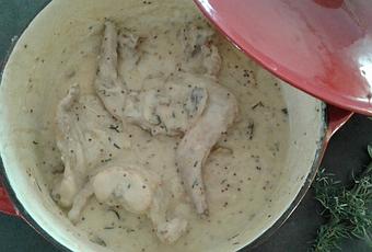 Voilà une bonne recette à l'ancienne. Réalisée à la cocotte en fonte avec une sauce bien riche et pleine de goût, c'est une recette réconfortante. Malgrés tout, l'estragon a un goût très particulier et tout le monde ne l'aime pas, alors à doser avec parcimonie. Pour ma part, j'en ai quand même mis 2 belles branches et ma crevette de 2 ans et demi a adoré! elle en a même redemandé et ça c'était plutôt inattendu.