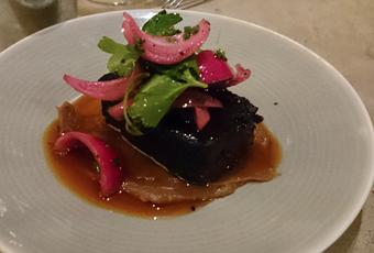 Il faudra refaire un tour sur place pour les cocktails, qui à n'en pas douter doivent être excellents, je fais toute confiance au barman. Je peux en revanche vous dire que la sélection de vins est originale et savoureuse. Courte, j'ai choisi parmi les deux rouges proposés le plus étonnant. Ce Presque pétillant, il était délicieux. J'ai honteusement oublié ses références... je vais corriger ça.