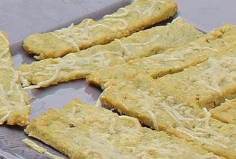 Parsemer les sablés du reste du fromage et laisser un peu reposer.