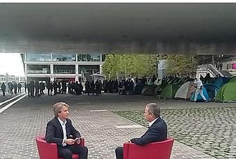 Tôt ce matin (les opérations ont commencé à 6h), à Paris, deux campements rassemblant près de 1 000 personnes ont été évacués . L’un d’entre eux, le plus important, était installé depuis plusieurs mois près de la gare d’Austerlitz, et comptait environ deux cents tentes le long de la Seine autour du pont Charles-de-Gaulle et l’autre était situé sur le parvis de la mairie du 18e arrondissement depuis début septembre. Selon la préfecture de Paris, « ces personnes seront hébergées « dans une vingtaine de centres d’hébergements d’urgence à Paris et en Ile-de-France « . Je serais curieux de savoir précisément lesquels… En attendant, j’ai eu la surprise de voir de mes yeux, en plein milieu de cette évacuation, cette photo proprement hallucinante de Nicolas Poincaré, pour l’émission Complément d’enquête, face à Nicolas Dupont-Aignan, président de Debout la France.