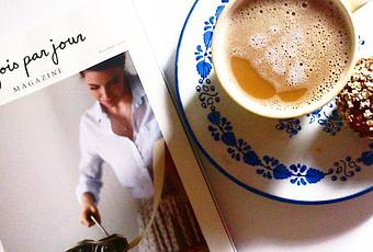 Il y a deux semaine, j'ai été dînée avec Caroline, la magicienne blogueuse derrière Maman Consomme. J'ai reçu un beau petit sac cadeau contenant un magazine que tout le monde convoitait... Le magazine Trois Fois Par Jour de Marilou et de son conjoint Alexandre Champagne. J'adore le blog, j'ai été déçue du livre, mais le magazine, première édition et c'est déjà un gros coup de coeur. Hier après-midi, j'ai eu enfin la chance de pouvoir profiter d'un café chaud et rattraper la lecture de mes magazines et Trois Fois Par Jour en faisait parti. Je peux vous dire que ce magazine se dévore avec les yeux!