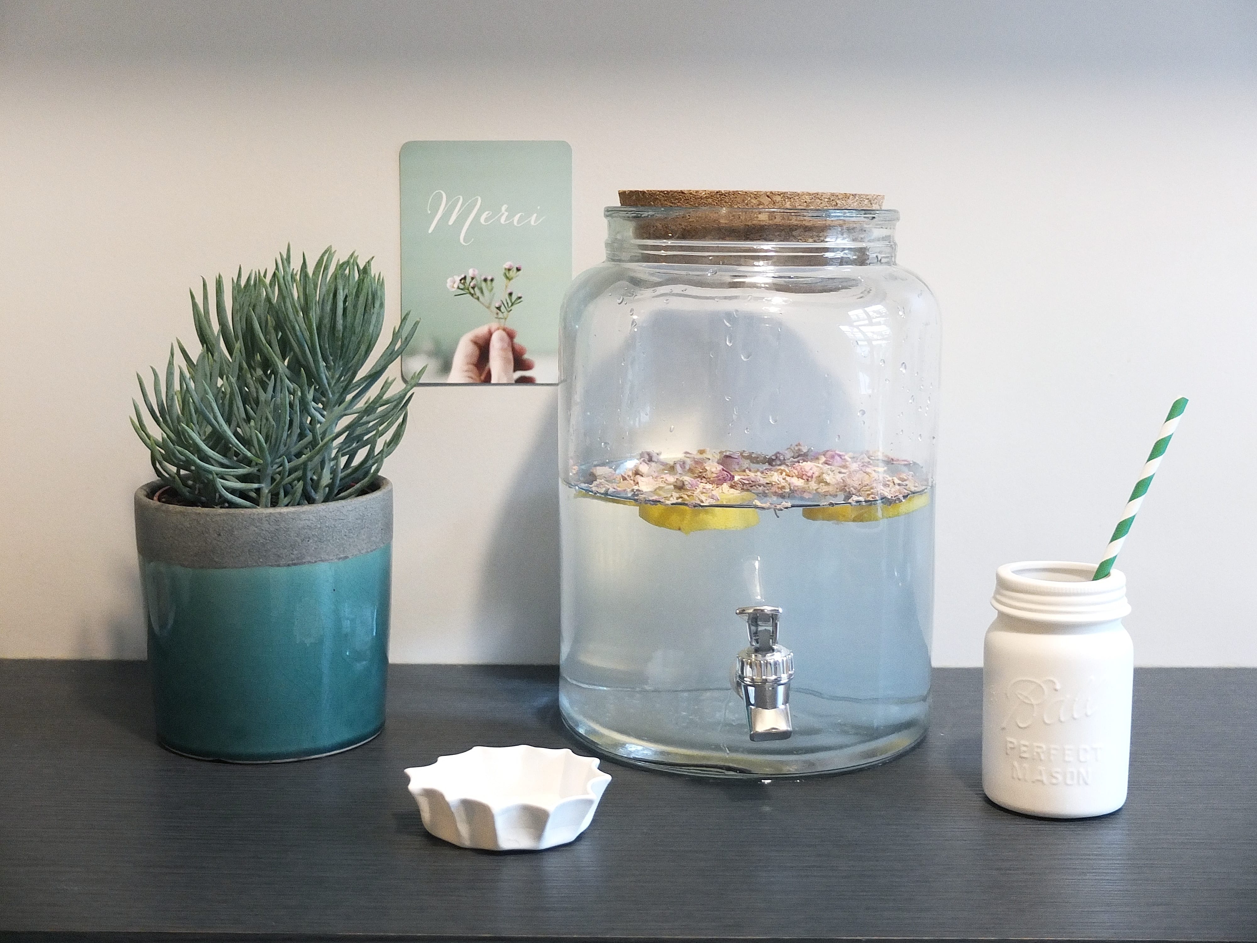 C’est convivial, joli et pratique. J’ai trouvé la mienne sur le site Westwing (qui comporte une très jolie sélection d’accessoires et de mobiliers, le tout mis en scène avec des thématiques qui permettent de faire un shopping intelligent en matière de déco, le tout à prix intéressants). Pour la recette, j’ai fait infuser du thé darjeeling, rajouté des tranches de citron, et des roses séchées (ramenées du souk de lors de mon voyage à Taroudant).