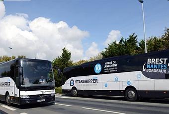 Les cars noir et blanc de la compagnie font escale, du lundi au dimanche, à l'arrêt de bus situé entre le pont Jean-Moulin et le rond-point du Parc des expositions. La grille horaire signale leur passage en semaine à 8 h 55 et 14 h 40 dans le sens Nantes-Bordeaux, à 9 h 10 et 14 h 55 dans l'autre sens. Les départs et arrivées se font plus tard dans la journée le week-end, jusqu'à 21 h 25 le dimanche entre Bordeaux et Nantes par exemple.Starshipper annonce ainsi des temps de trajet à faire pâlir un chef de gare : La Rochelle-Nantes en 2 h 05, Bordeaux-La Rochelle en 2 h 25. Le prix (13 euros pour Nantes-Bordeaux, mais avec une offre de lancement de 10 euros) n'est pas fait pour rassurer la SNCF, dont le train reliera Bordeaux à Nantes en plus de cinq heures cet automne, pour un prix nettement plus élevé (jusqu'à 146 euros ce vendredi pour un temps de trajet de 5 h 53…).« On fait beaucoup mieux, c'est sûr. Plus rapide et moins cher. Notre principal concurrent, ce n'est pas le train, c'est le covoiturage », souligne Alain Roué, qui mise sur le confort de ces véhicules de 48 places dernier cri, équipés du Wi-Fi gratuit, de prises électriques, de sièges inclinables espacés de 96 cm pour étirer ses jambes, ou encore de liseuses individuelles. Sans oublier des toilettes, des boissons fraîches, de la vidéo, 14 mètres carrés pour pouvoir ranger les bagages (deux valises autorisées par passager)… Rien à voir avec les cars scolaires !Pour le PDG breton, le départ de la nouvelle ligne est satisfaisant, et même plus qu'encourageant à La Rochelle. « Entre La Rochelle et Nantes ou Bordeaux, c'est là que nous avons le plus de passagers, surtout le vendredi et le week-end. On a jusqu'à 20, 25 passagers par trajet. C'est une clientèle variée : étudiants, retraités, familles. Des budgets modestes ou des gens qui ont le temps. On est sur le même créneau que le covoiturage. »
