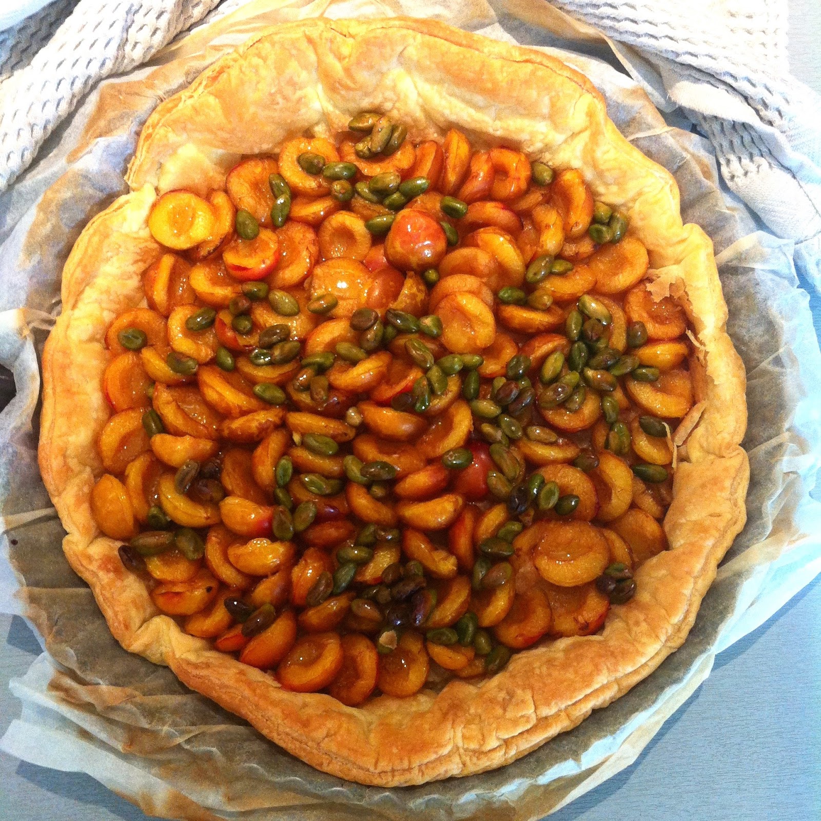 Faites cuire votre pâte à blanc dans un four préchauffé à 190°C jusqu'à ce qu'elle obtienne une belle coloration dorée. Une fois sortie du four et un peu refroidie, garnissez-la de vos mirabelles dénoyautées et coupées en deux. Posez-les avec la partie bombée sur le fond. Serrez-les bien et n'hésitez pas à les faire se chevaucher: plus y'en aura, plus ça "compotera". Entre temps, vous aurez rapidement enrobé vos pistaches de miel bien chaud: environ 3 cuillères à soupe de miel chauffé sur feux doux. Déposez vos pistaches miellés sur la tarte et enfournez-la pour environ 20 minutes jusqu'à ce que vos mirabelles aient bien doré.