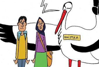 Nouveau dessin en une de L'Actu n°112. Fidèle à sa tradition d'accueil, l'Université de Strasbourg se mobilise pour accueillir les étudiants réfugiés du Moyen-Orient.