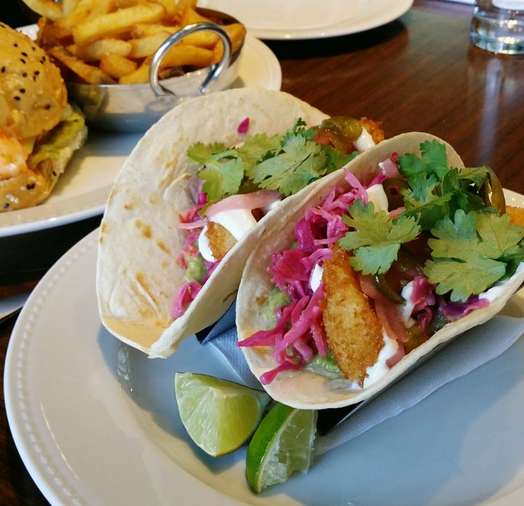 Entre-PainsAprès le gravelax, le champagne et les huîtres, spécialement sélectionnées pour nous, croyez-le ou non, nous avions l'appétit encore creux. Nous avons poursuivis avec deux plats principaux à tomber par terre! Le burger de homard est mon préféré des deux, il est siiiii tendre! J'en rêve encore. La guacamole à la coriandre des tacos aux poissons est à s'en lécher les doigts: miam! Un excellent endroit à découvrir à l'heure du midi, comme de soir. Petit plus: l'architecture aussi intéressante que les plats qu'on y sert.