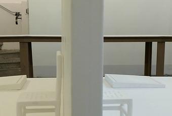 En entrant dans le Centre d’Art contemporain La Traverse d’Alfortville, ce qui me frappe d’abord, c’est le blanc. Blanc des murs, blanc de la plupart des oeuvres présentées, comme si on avait effacé toutes les traces de ce qui a précédé. Pourtant des papillons tentent d’imposer leur bleu sur le mur à droite de l’entrée, de ces papillons qui reviennent quand on les chasse. Et, dans l’angle de l’escalier, plus terrible, un pendu, intitulé Armenian Portrait 1915, ce qui marque un tournant de l’histoire.