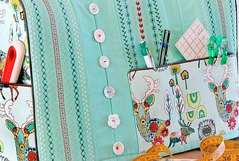 Votre machine à coudre mérite une jolie housse pour la protéger de la poussière ! Et si cette housse est en plus pratique et ingénieuse, c'est encore mieux! Ainsi, cette housse est non seulement agrémentée de jolis pointés décoratifs mais elle comporte deux boucles cousues dans les coutures latérales qui permettent de l'enlever de la machine encore plus facilement quand vous avez envie de coudre. Et il y a également des poches sur le côté et sur le devant pour y glisser des fournitures ainsi que les objets que vous utilisez très souvent quand vous cousez ( mètre ruban, découd-vit bien sûr...)