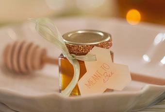 Disposez vos minis pots de miel sur une table à part afin d’offrir un cadeau pour invité unique.