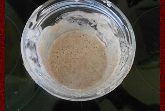 - poids du levain en eau et en farine. Par exemple s'il reste 100 g de levain, ajouter 100 g d'eau et 100 g de farine.