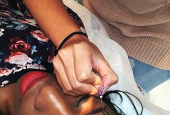 Avec une brosse et un petit embout, la praticienne prélève la juste dose de coloration qu’elle applique minutieusement entre le cil (mais jamais sur les cils !).