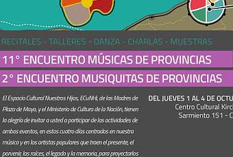A partir de demain, jeudi 1er octobre 2015, jusqu'à dimanche, se tient à Buenos Aires, au Centro Cultural Kirchner, Sarmiento 151, une nouvelle édition d'un festival organisé à l'initiative du Centre ECuNHi, que dirigeait jusqu'à il y a peu l'actuelle ministre de la Culture, Teresa Parodi. Le festival Músicas de Provincia aura cette année un cadre somptueux, plus digne de son ampleur et dotée d'une bien meilleure acoustique. L'événement va rassembler dans la capitale fédérale toutes les musiques des différentes provinces du pays.