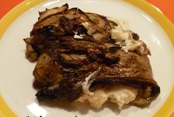 Ma présentation n’est pas terrible…….. Mon aubergine était sans doute trop cuite………… ça ne change rien au goût… on s’est bien régalé… !!!! c’est délicieux !!!!