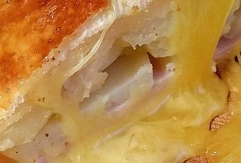 Ce feuilleté est pour nous..... du camembert, des pommes de terres et du jambon (dinde fumé halal pour moi) et le tour est joué pour une COPIEUSE entrée ou en plat avec une salade (il faut rester résonnable).