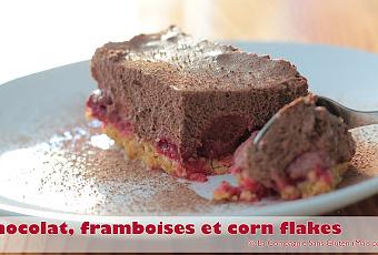 Dessert chocolat, framboises et corn flakes