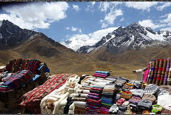 Juste pour continuer notre cure de haute altitude, nous avons grimpé jusqu'à 4335 mètres à La Raya, juste à mi-chemin entre Puno et Cuzco, un haut lieu entouré montagnes et de glaciers, ou le manque d’oxygène n'a pas manqué de se faire sentir à nouveau. Il s'agissait là d'un autre endroit pittoresque, parfait pour faire des photos et pour les petits commerçants qui vendaient leurs créations en laine d'alpaga.