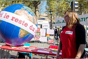 Le mouvement citoyen Alternatiba place de la Republique à Paris, grand village des alternatives contre le changement climatique, le 27 septembre 2015.