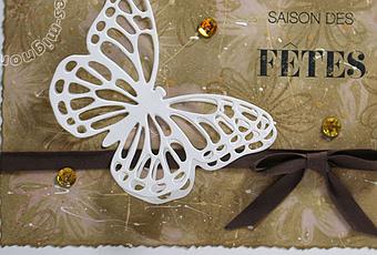 Un fond travaillé, un papillon blanc qui nous annonce les fêtes à venir…