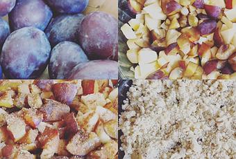 Il me restait quelques prunes un peu abîmées… Du coup j’ai préparé un crumble avec la recette de base du crumble aux pommes mais en rajoutant les prunes !
