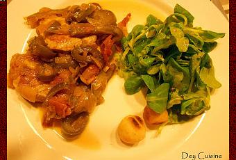 Pour faire un plat un peu léger on l'a accompagné de salade et de quelques pommes noisette qu'il me restait de la veille mais avec du riz, des pâtes ou des pommes de terre c'est aussi très bien!