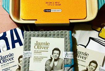 J'ai reçu un plat Le Creuset et des linges à vaisselle Jamie Oliver. La gamme Le Creuset ce sont des produits incroyables, d'une qualité irréprochable et qui valent vraiment leur pesant d'or. Quoi demander de mieux lorsque le produits est au coloris de son décor! J'ai toujours aimé la gamme Le Creuset et tout le monde devrait avoir dans sa cuisine. Depuis la création des premiers ustensiles de cuisine en fonte émaillée de couleur flamme volcanique, il y a plus de 85 ans, Le Creuset fait figure de chef de file en matière d'innovation grâce à ses teintes riches et avant-gardistes.