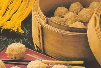 Ces petites boulettes de porc haché sont enrobées de riz puis cuites à la vapeur.