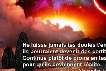 Ne laisse jamais tes doutes t'envahir. Ils pourraient devenir des certitudes. Continue plutôt de croire en tes rêves pour qu'ils deviennent réalité. - Alexandra Julien