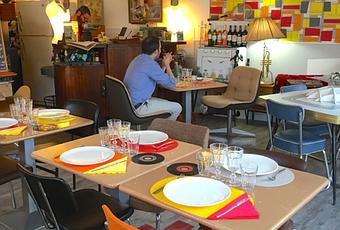 Crédits photos: Yiyou from Mars et page facebook La Table VintageEt nous n'avons pas été déçus ! Nous avons d'abord été gentiment accueillis par le maître des lieux, un chineur passionné qui nous a présenté le concept. Dans ce resto-brocante tout ou presque est à vendre. La déco qui change donc régulièrement est composée d'objets souvent insolites des années 50 à 80 qui replongeront certains dans leurs souvenirs de jeunesse.