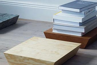 Objects for books est une serie très limitée de socles pour livres, réalisés par la suédoise Jessica Signell Knutsson, designer industriel. Disponibles en différents matériaux tels que contreplaqué, MDF, marbre, peau de vache tannée au végétal ou acier inox poli, les socles sont actuellement exhibés et vendus chez Konst-ig à Stockholm. J'adore.