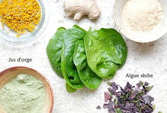 Le jus d'orge en poudre riche en chlorophylle mais aussi tout un panel d'oligoéléments, vitamines A & C est un "super-aliment" excellent pour nettoyer le corps et récupérer de la fatigue.