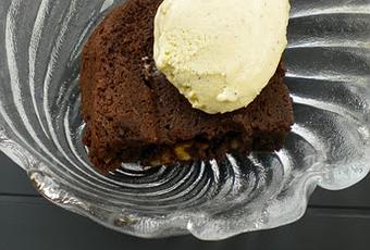 Démoulez le gâteau, puis coupez 9 carrés, servez avec une boule de glace vanille pour plus de gourmandise.