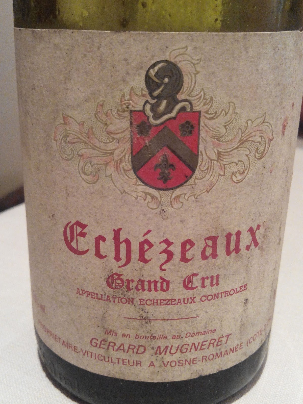 Une semaine riche ! Echézeaux Grand Cru 1988, Gérard Mugneret : un grand pinot à point, sur des notes évoluées tertiaires qui ne cachent pas le fruit. C'est relativement léger, plus sur la finesse et l'élégance que sur la structure. Tannins fins, notes de roses et de feuilles mortes alliées à un fruité tuilé. Excellent