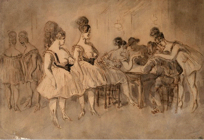 C’est au bal qu’on trouve le plus de différences entre les prostituées. Elles s’y retrouvent toutes, mais elles ne s’y prennent pas de la même façon. Il y a les prostituées chics, et les galvaudeuses.