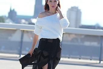 Je vous présente officiellement la plus jolie jupe du monde : sublime dentelle, découpes ravageuses, transparence audacieuse. Pas facile à porter dans toutes les situations, je vous l’accorde, mais tellement belle pour une soirée, un dîner, une fashion week, ou pour surprendre en transparence délicate !