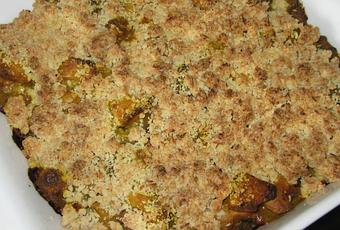 Crumble : 80g de beurre + 80g de farine +50g de noix de coco rapée + 10g de sucre roux