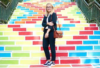 On commence la semaine dans un décor vitaminé, un lieu repéré sur Internet et qui s'avère être juste en bas chez mon amie Stéph, comme quoi parfois on a des merveilles à deux pas de chez soi! Bref après m'être rendue compte que ces marches colorées de folie étaient à deux pas de chez moi, je me suis dit qu'y shooter était une question de vie ou de mort... ça va je déc'!