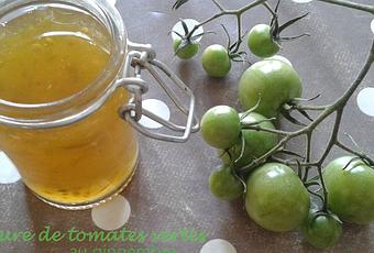 La saison des tomates est malheureusement belle et bien finie chez nous. Mais dans mon jardin il me restatit une quantité phénoménale de tomates pas mûres et je ne voulais pas les perdre. Je les ai donc cueillit pour finalement en récolter 4 kgs et faire pas loin d'une vingtaine de verrines de délicieuses confitures!