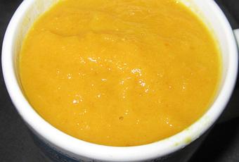 Une fois les carottes fondantes, ajouter le beurre de cacahuète et mixer à l'aide d'un pied à soupe.