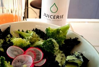 Chez Juicerie, le fond de commerce est liquide. Des jus de fruits et légumes bio, évidemment, frais, cela va de soi, et pressés à froid. Qu'est-ce que ça veut dire ? Simplement qu'aucune surchauffe ne vient tuer les bénéfices du produit. La pression à froid est une méthode tellement en vogue aujourd'hui que certains petits malins tentent de nous faire croire qu'ils l'utilisent pour leur jus en jouant sur les mots (coquinous). Elle préserve ainsi les vitamines et tout le toutim. Bien sûr, sans additifs ni conservateurs, du coup il faut consommer le jus dans les 24h pour bénéficier de toutes ces merveilles.