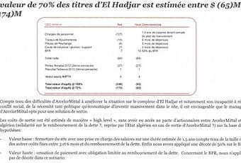 La Secrétaire Générale (SG) du Parti des Travailleurs (PT), Louisa Hanoune, a dénoncé, ce mardi 13 octobre, le coût de la reprise totale par l’État de la filiale algérienne du groupe sidérurgique ArcelorMittal. Elle ne croyait sans doute pas si bien dire.En effet, selon une étude « strictement confidentielle » de 2012 réalisée par le cabinet d’affaires international Price waterhouse Coopers (PwC), les actifs d’ArcelorMittal, avant l’augmentation de la part de l’État algérien à 51 %, ne valaient presque rien. Pire, en prenant en compte les dettes de l’entreprise, PwC valorisait négativement les titres d’El Hadjar : ils étaient estimés entre -65 millions de dollars et -174 millions de dollars. Une entreprise sans valeur rachetée à prix d’or Souvenez-vous, l’État algérien via l’entreprise publique Sider détenait 30 % du capital d’Arcelor Mittal Algérie. Puis, en 2013, la partie algérienne a porté sa participation à 51 %. En échange de ce transfert de capital, l’Algérie a mis en place un « plan de développement d’ArcelorMittal Annaba (…) 700 millions de dollars de la Banque extérieure d’Algérie (BEA) » était prévu sur la période 2014-2017.Pourtant, ArcelorMittal Algérie était une entreprise en grande difficulté. En effet, le document de PwC est instructif. Dans une étude de 50 pages, le cabinet d’affaires démontre que « la valeur de 70 % des titres d’El Hadjar est estimée entre -65 millions et -174 millions de dollars ». À l’époque, PwC estimait que « compte tenu des difficultés d’ArcelorMittal à améliorer la situation [sociale, NDLR] (…) et de la nécessité (…) d’investir massivement dans le site, il est envisageable que le management opte pour une solution de sortie ». Un chiffre d’affaires en chute libre et des déficits De plus, l’étude de PwC révèle que le chiffre d’affaires du complexe d’El Hadjar à Annaba a été divisé par plus de 3,5 entre 2007 et 2012. En effet, de près de 61,9 milliards de dinars en 2007, le chiffre d’affaires a atteint à peine 17,55 milliards de dinars en 2012. Cela n’a pas manqué de se refléter sur les résultats nets des exercices sur la même période. Alors que le complexe d’Annaba dégageait un bénéfice net de pratiquement 1,6 milliard de dinars en 2007, il s’est retrouvé déficitaire en 2012, à hauteur de 2,12 milliards de dinars 5 ans plus tard. Pire, la situation était encore plus délicate entre 2009 et 2011. En effet, après un bénéfice dérisoire de 669 millions de dinars en 2008, le groupe enchaîne les déficits conséquents : 11,01 milliards en 2009 puis 10,4 milliards en 2010 et 7,83 milliards en 2011. Des pertes qui s’ajoutent à la dette de l’entreprise dont l’État algérien a hérité au moment de la reprise.Cadeaux de l’État en série… La SG du PT a rappelé ce matin qu’Arcelor Mittal avait plus d’un milliard dollars de dette, « mais l’État l’a libéré de tous ses engagements » et a ajouté que le groupe sidérurgique indien « n’a investi que 120 millions de dollars depuis son arrivé en 2001. » Mieux, lors de la prise de participation majoritaire (70 %) par ArcelorMittal dans le capital du complexe d’El Hadjar, le groupe indien Ispat a trouvé, telle une « cerise sur le gâteau », l’équivalent de 80 millions de dollars de stocks de marchandises. Cette production non-écoulée a également profité à l’entreprise indienne. À ces cadeaux s’ajoutent plusieurs autres avantages, dont le prix du gaz naturel.Ainsi, malgré une gestion calamiteuse de l’entreprise, des résultats médiocres et en chute libre, des conflits sociaux à répétition et une absence de création de richesse, le groupe ArcelorMittal s’est vu offrir des centaines de millions de dollars pour la reprise d’un actif quasi-moribond. Or, les arguments pour le racheter à moindres frais ne manquaient pas. Une question se pose aujourd’hui : qui avait intérêt à surpayer de cette façon un actif sans valeur ?http://www.tsa-algerie.com/20151013/arcelormittal-el-hadjar-comment-letat-a-rachete-une-coquille-vide-au-prix-fort-document/