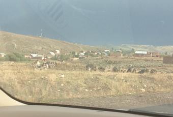 Hé oui, nous sommes revenu dans la capitale de l'Arménie après cette virée à Gyumri... (voir précédent post). 3 heures de route.. Beaucoup de pluie.. Et pour vous donner une idée de la campagne du plateau de Shirak, voilà une photo que j'ai prise de la voiture...