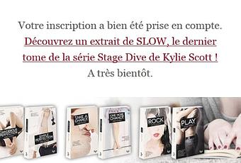 Excellente nouvelle les ami(e)s en vous inscrivant ICI à la newsletter de Collection &moi , vous pourrez découvrir en exclusivité le prologue de Slow et ainsi découvrir ce qui attend Ben et Lizzy dans cet ultime tome de la Saga Stage Dive Je viens de dévorer cet extrait et j'ai hâte !!! Slow sortira le 4 novembre. Vous pouvez le pré commander en cliquant ci dessous Sachez également qu'une nouvelle sortie chez Collection &moi aura lieu en janvier