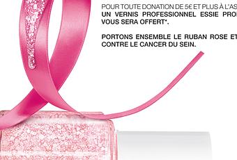 Jusqu'au 17 octobre, des vernis ESSIE Professional et une tirelire pour l'Association seront disposés sur les comptoirs-caisses des onze boutiques BCBGMAXAZRIA Françaises participantes. Dès 5€ ou plus de donation à l'association, les clientes se verront offert un vernis à ongles rose ESSIE Professional, en remerciement.