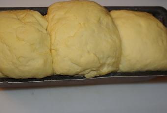 Beurrer et fariner un moule à cake. Y déposer les 3 boules et faire lever la pâte pendant 45min.