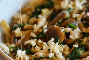 3)Ajouter les pâtes réservées, les épinards, le jus et le zeste de citron à la sauce et cuire, en brassant, 2 minutes ou jusqu'à ce que les épinards aient ramolli, sans plus. Ajouter le fromage féta. Saler, poivrer et mélanger.