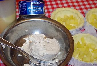 Pour ce lundi, je vous propose des petites tartelettes qui conviennent très bien comme repas du soir. Ayant reçu une boite de brandade de morue de mon partenaire, j'ai eu envie de la déguster via ses petites tartelettes.
