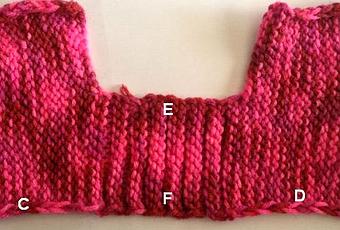 Ici sur la photo il faut faufiler la partie E serrer et faire un nœud, tu fait la même chose avec la partie F .