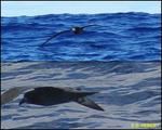 - Et la rareté du jour : un pétrel de Solander (Pterodroma solandri), manifestement fort alléché par les odeurs que nous diffusons, qui vient droit sur nous et nous fait grâce de quelques tours de bateau, au ras des moustaches. Juste le temps de se jeter sur mon appareil et capter à l'arrache ces deux clichés :