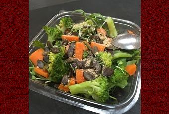 Des légumes cuits al dente et un peu de roquette pour faire le plein d’énergie. Avec quelques graines de courge qui craquent sous la dent c’est vraiment un vrai bonheur à assaisonner d’un filet d’huile d’olive, de courge, de lin, de sésame grillé… enfin avec ce que vous avez dans le frigo. Une bonne idée pour un déjeuner léger, à accompagner d’une bonne soupe. Vous pourrez pas dire que je soigne pas votre forme hein …